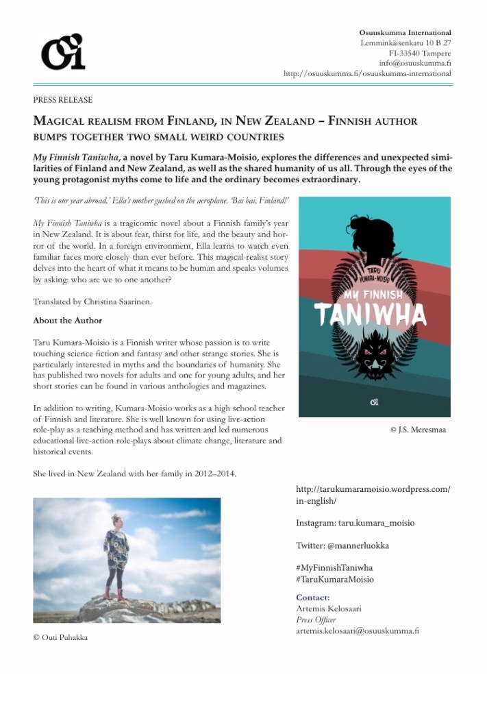 I’ve already got a few questions in English about My Finnish Taniwha. Many seem to be interested in the way I have used a child’s perspective. That makes me feel happy!