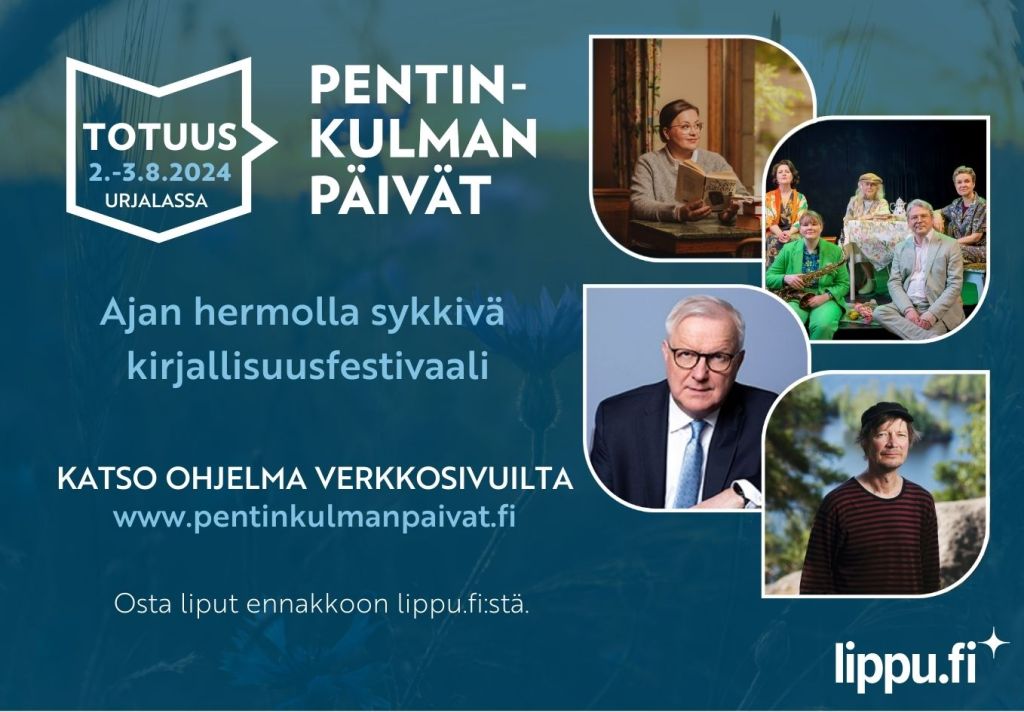Freelancer-sanataidetyöläisenä en lomaile kesällä, vaan tuotan Pentinkulman päivät -kirjallisuusfestivaalia Urjalaan. Tervetuloa sinne siis 2.-3. elokuuta! Ohjelma on jo nähtävillä verkossa, lipunmyynti käynnistynyt ja esitteet painossa. Hieno, monipuolisen laadukas tapahtuma tulossa! Organisointi on tietysti aikaa vievää – ja välillä myös yksinäistä sähköpostien äärellä istumista, vaikka apua on hyvin saatavilla pulmatilanteisiin. Olen muistellut osin kaiholla opettajavuosieni värikkäitä työyhteisöjä (myös opiskelijoiden kanssa touhuamista!) ja Suvivirrestä alkaneita kesälomia, vaikka en sinänsä tahdokaan enää vanhaan virkaani takaisin. Nyt teen aivan liikaa läppärihommia, huh.