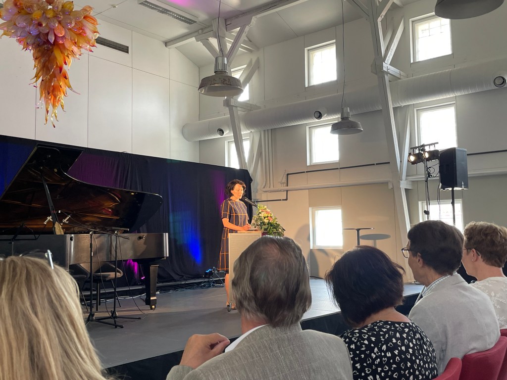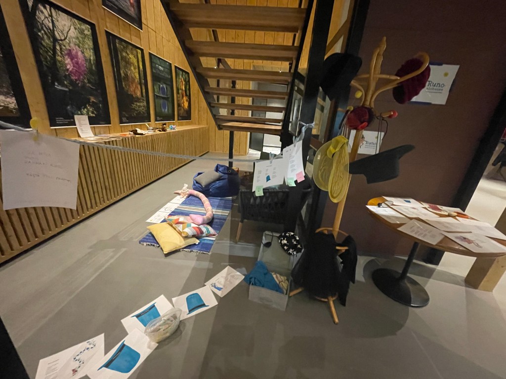 Kuvamuistoja #2: Pentinkulman päivillä riitti huikeaa kirjallista ohjelmaa aina Kirjan juhlan ajankohtaisista puheenvuoroista (kuvassa Jenni Haukio juhlapuhujana) ja koskettavasta Karjalasta Urjalaan -esityksestä Samuli Putron sydämelliseen keikkaan. Festivaali muuten tukee elinikäistä lukemisen harrastamista ja matalan kynnyksen luovaa sanataiteilua, joten kuka vain sai poiketa festivaalipäivien keskellä lapsenmielisessä hengessä tutustumaan ilmaiseen, monitaiteiseen Nuutajärven Prykärimuseon aulaan koottuun Runo-olohuone-näyttelyyn ja jättää sinne oman taiteilutervehdyksensä. Kirsi Kunnas 100 -juhlavuoden näyttely pohjautui Kunnaksen rakastettuihin lastenrunoihin sekä Jani Ikosen kuvituksiin WSOY:n runoantologiasta Haitulan taikahattu.