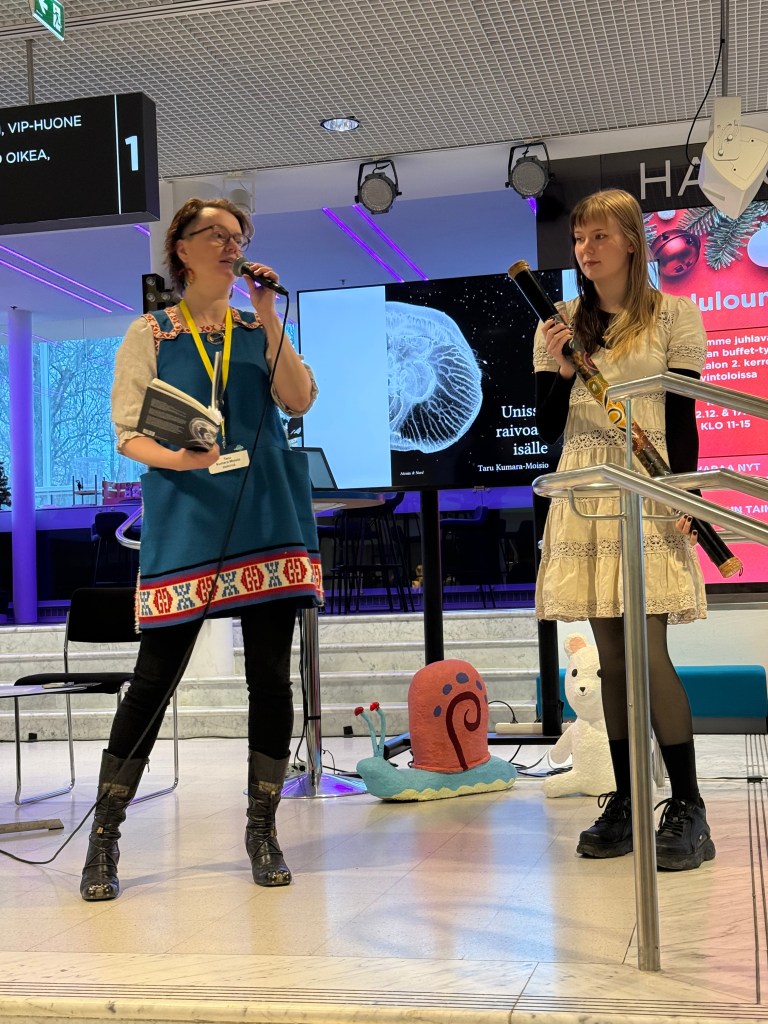 Runokokoelmani Unissa raivoan isälle (Atrain&Nord, 2025) on nyt julkaistu ja saatavilla muun muassa kustantamon verkkokaupasta. Kirjanjulkkarit Tampereen Kirjafestareilla sujuivat sydämellisesti – kiitokset yleisölle ja minua haastatelleelle Matti Ylipiessalle, jonka kanssa pohdimme syvällisesti ylisukupolvisia traumoja ja puhumattomuuden rikkomista! Yksityiset kokemukset laajenivat yleisiksi. Lopuksi esitin runojani yhdessä tyttäreni kanssa.